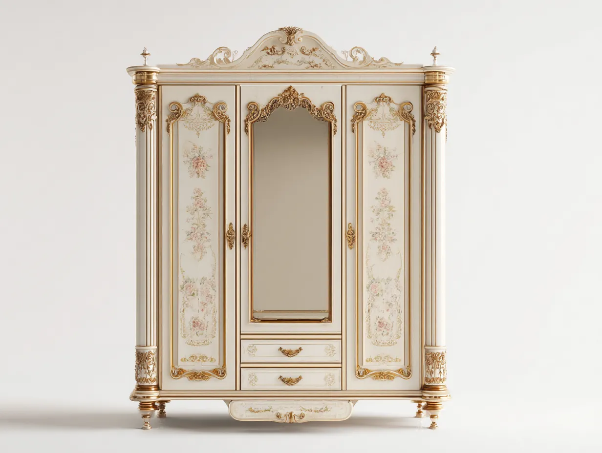 Armadio - legno-vetro-metallo - 185x62x218 cm - avorio-oro - stile classico